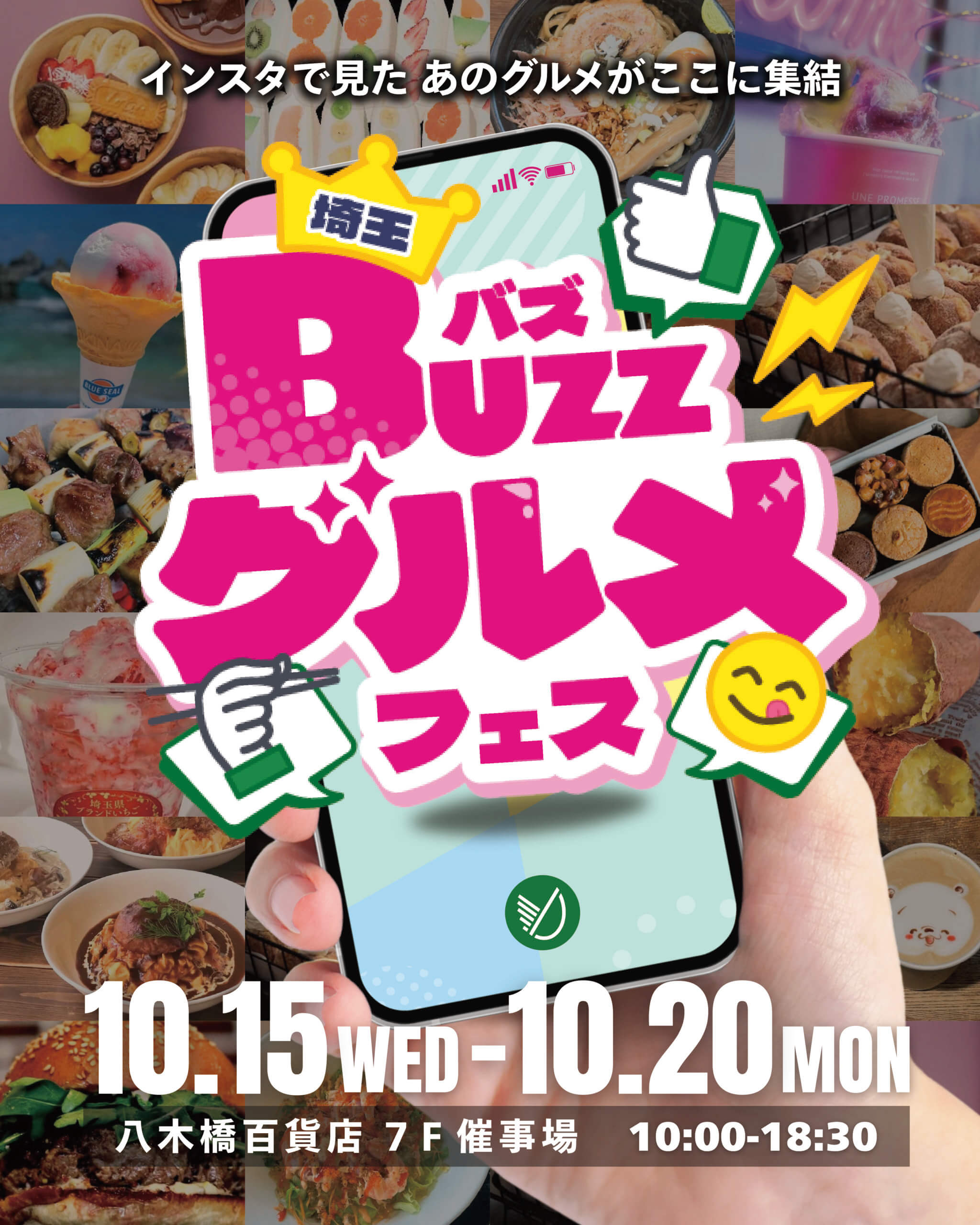『埼玉バズグルメフェス』は、埼玉を代表するグルメインフルエンサーが紹介する、話題のお店が八木橋百貨店に大集合のイベントです。