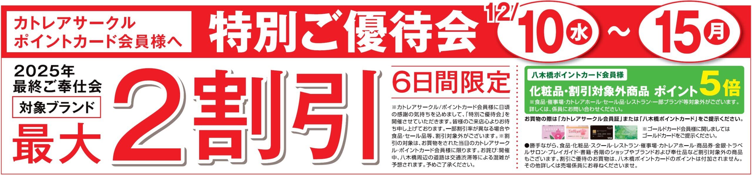 2025年最終ご奉仕会 対象ブランド最大2割引