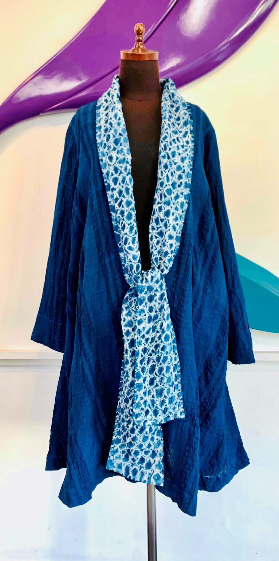 甘木絞り藍染絞り麻コート