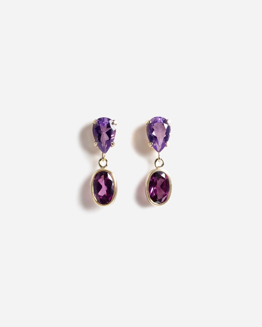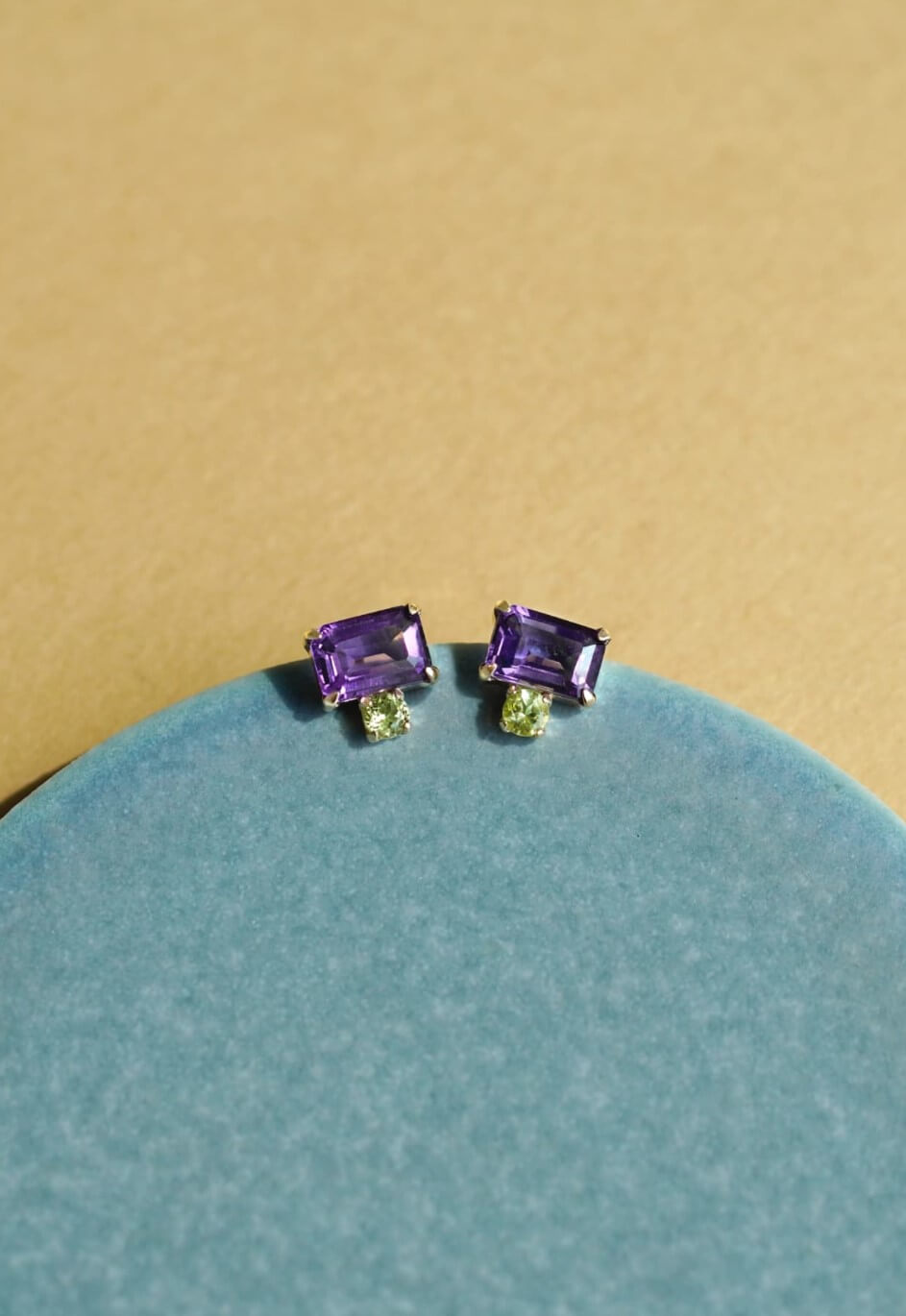 2月の誕生石、アメジストは「誠実」や「平和」、「愛情」などの意味を持ちます。高貴な色と言われる紫のアメジスト、透き通る紫色が美しいピアスです。気軽にカラーコーディネートをお楽しみ下さい。