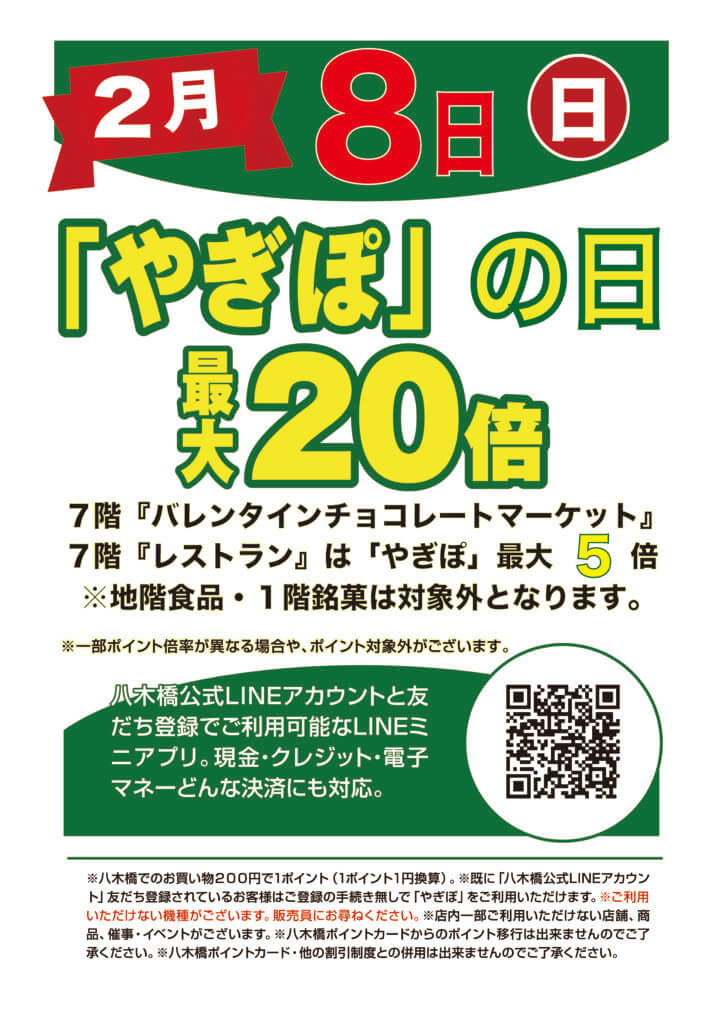 ※7階「バレンタインチョコレートマーケット」「レストラン」は5倍。※地階「食品」・1階「銘菓」は除外となります。※その他、一部ポイント倍率が異なる場合や、ポイント対象外がございます。詳しくは売場スタッフまでお尋ねください。