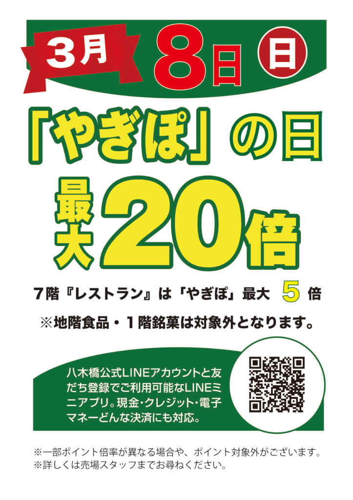 ※7階レストランは最大5倍。※地階食品、1階銘菓は対象外となります。※一部ポイント倍率が異なる場合や、ポイント対象外がございます。